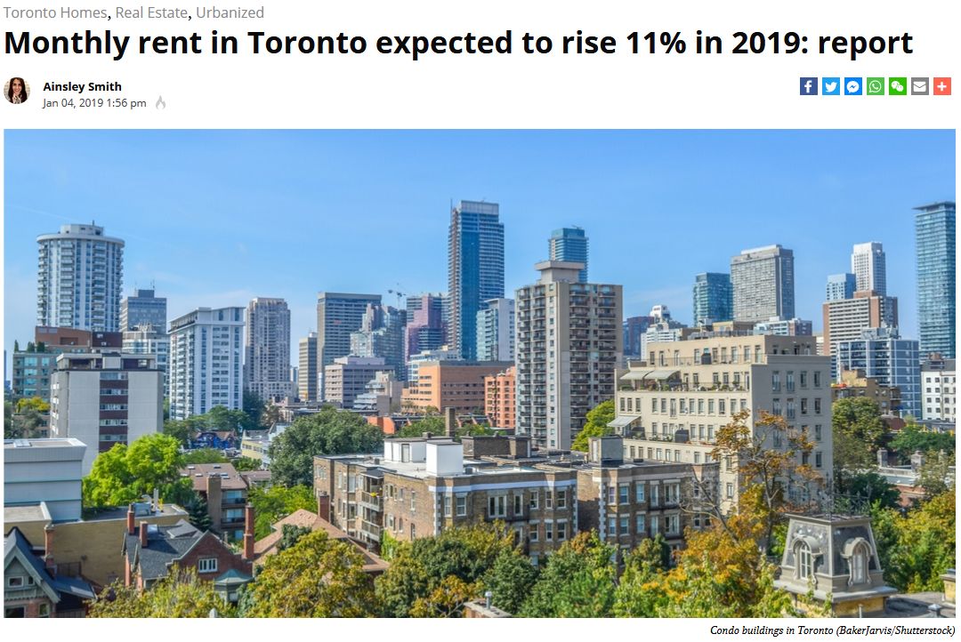 【多伦多】2019租赁市场仍将强劲,预计涨幅高达11%!