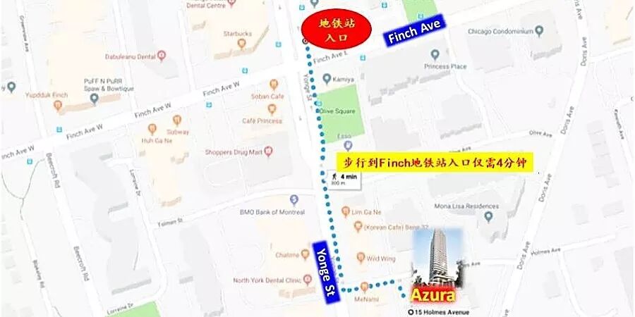 AZURA:步行到Finch地铁站入口仅4分钟!