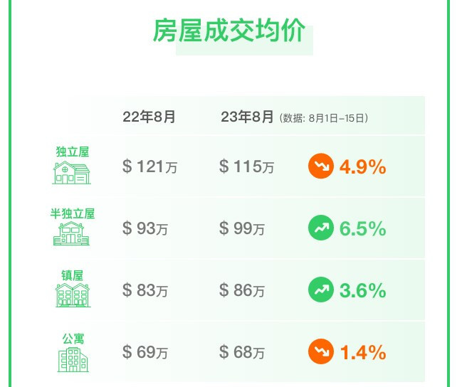 8月上半月统计数据出炉:独立屋公寓平均价都下跌