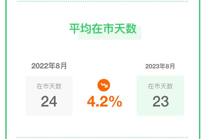 房屋在市天数平均为23天,比去年同期下降4.2%。